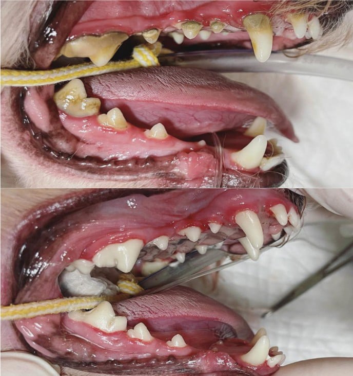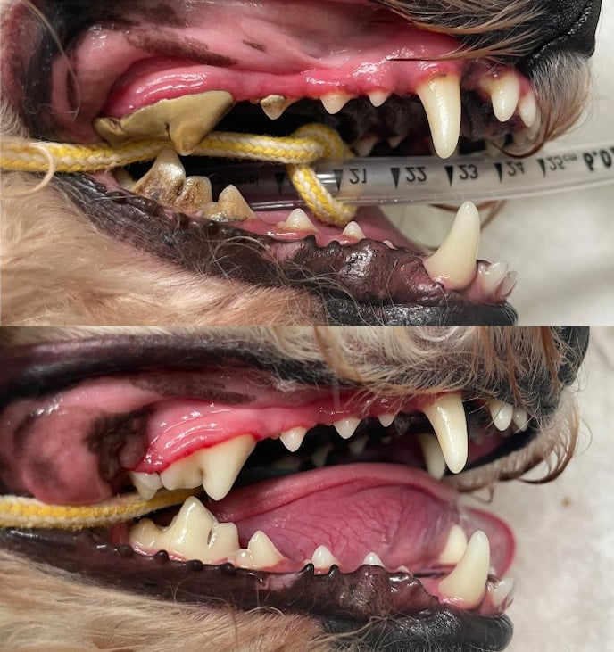 Figure 3. Pre and post-dental treatment on a canine patient (Narangba Vet Clinic, 2023)